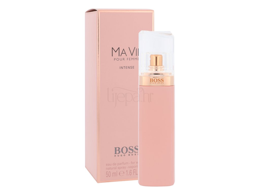 Hugo Boss Ma Vie Pour Femme Intense je novija, bolja i jača verzija istoimenog originala. Miris je inspirisan neovisnom ženom samopouzdane aure, koja uživa u malim stvarima. Elegantna, cvjetno - zelena i moderna kompozicija bazira se na cvijetu kaktusa, koji otvara kompoziciji uvodi do buketa u srcu, koji se sastoji od mirisa ruže. Drveni tonovi kedra završavaju kompoziciju. Parfem će oduševiti svakoga!