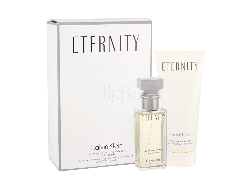 Romantičan buket nježnih biljnih motiva pomiješanih sa mirisom šume i zelenim notama. Za kreiranje mirisa Eternity for Women Calvina Kleina je inspirirao brak s tajnicom Kelly Rector. Za proslavu braka Calvin je poklonio Kelly lijepi vjenčani prsten, koji je knez Windsor nekada poklonio voljenoj kneginji. Na jednostavnom prstenu ukrašenom dijamantima utisnuta je jedna riječ – ETERNITY – vječnost – idealan simbol trajne ljubavi i odanosti. Sada ova ideja živi i dalje u romantičnom mirisu Eternity.