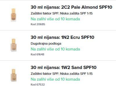 Estée Lauder Double Wear Stay In Place tekući puder dostupan je u više od 55 nijansi, dok ih na našem web shop-u možete pronaći 30-ak. Dovoljno široki raspon, da svako može pronaći voju idealnu nijansu.