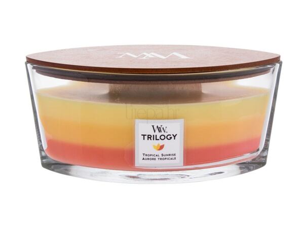 WoodWick Trilogy svijeće izlivene su u tri sloja, a svaki sloj ima karakterističnu boju i miris, koji se prilikom topljenja miješaju stvarajući tako savršenu harmoniju mirisa.